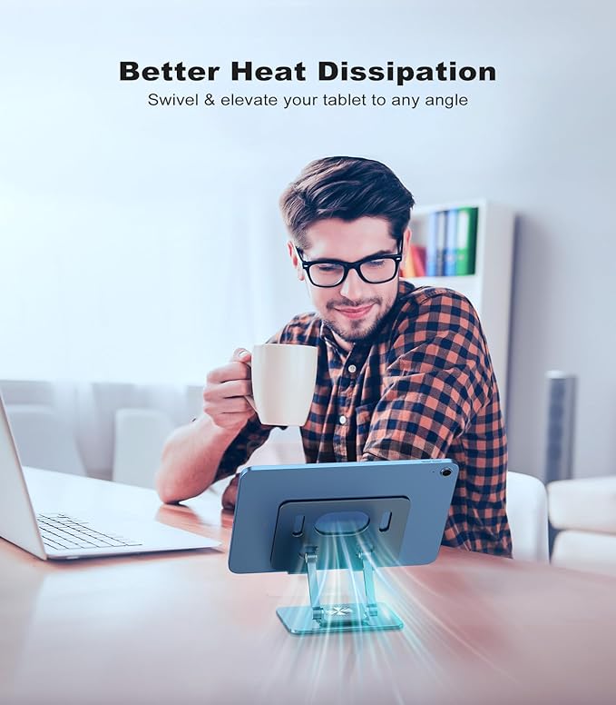 - Rotatable & Convenient: With a 360° rotation base, you can freely adjust the angle of the ipad stand holder to set the best viewing angle that suits your preference, also making it extremely easy to share content.You can freely adjust the tablet stand angle to a perfect eye level that helps to reduce shoulder and neck pain, which ensures you are always in a comfortable position for working or relaxing