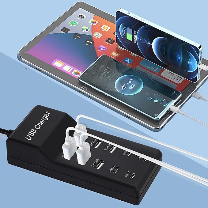 - 10 IN 1 Fast Charger:This Charger With 4 USB-C ports and 6 USB-A ports, you're ready to charge ten of your devices simultaneously. Automatically detect all connected devices, adjust the output accordingly, ensure a constant voltage to minimize charging time.