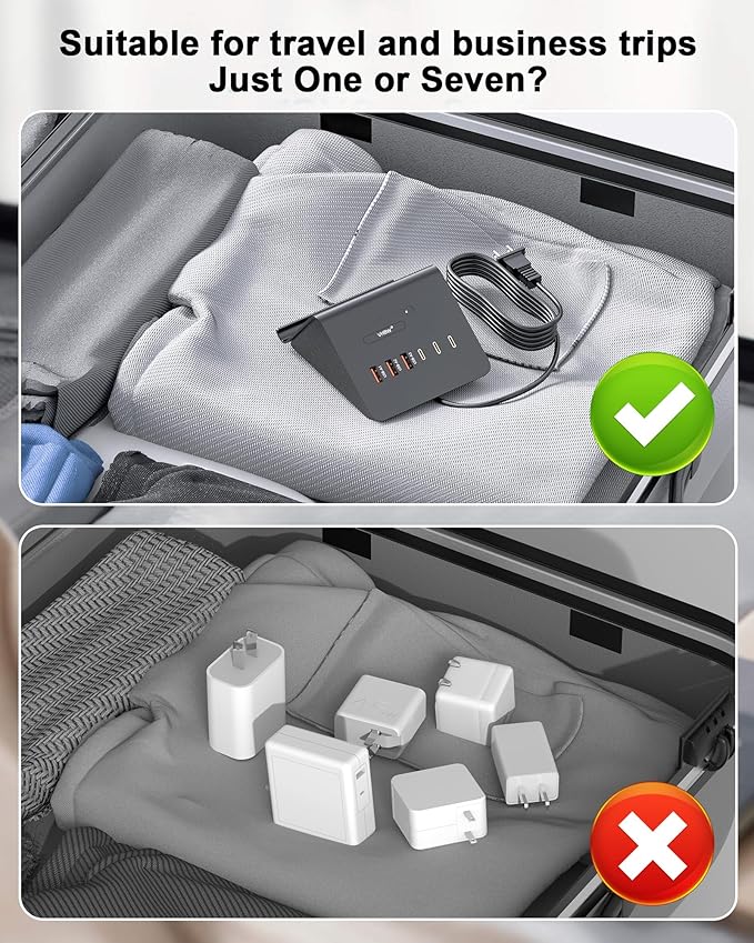 - ππSpace-Saving: Our USB C Charging Hub is designed to save space, keeping your desktop tidy. The 5ft/1.5m power cord can be extended to the desktop, bedside, counter, nightstand, or service desk, making it ideal for use at home, in the office, or on the go.