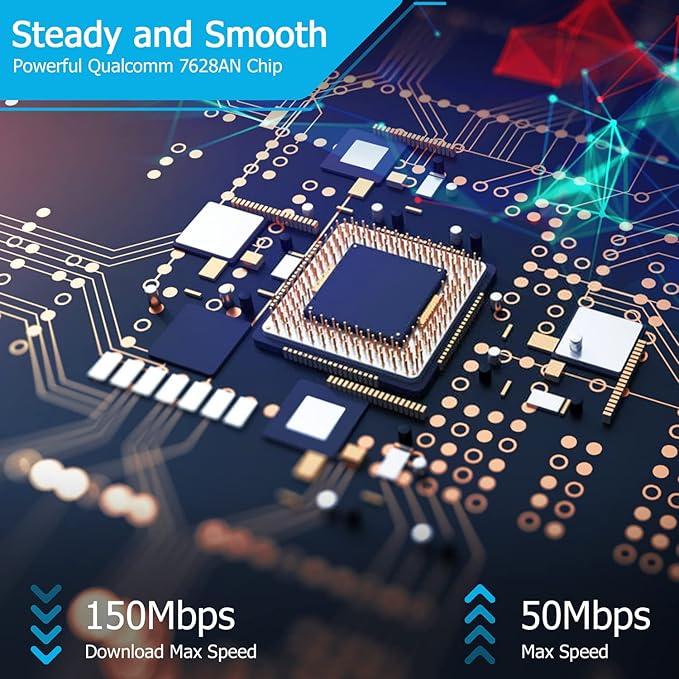 - FAST 4G LTE: Allowed for downloads at speeds up to 150Mbps & uploads 50Mbps for uninterrupted HD streaming, gaming, video calls etc. Please check with preferred carrier on data plan details and limitations. Our 4G router works with AT&T and T-Mobile only. (NOT for Verizon or Sprint & SIM Card not included)