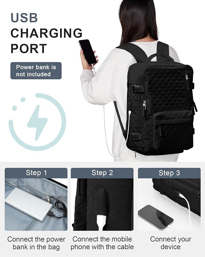 - Laptop backpack USB interface๏ผThe USB port is configured with a charging cable for conveniently charging your cell phone, iPad and laptop on the go. Attention: this backpack does not include the power bank itself. The USB charging port provides charging convenience only.