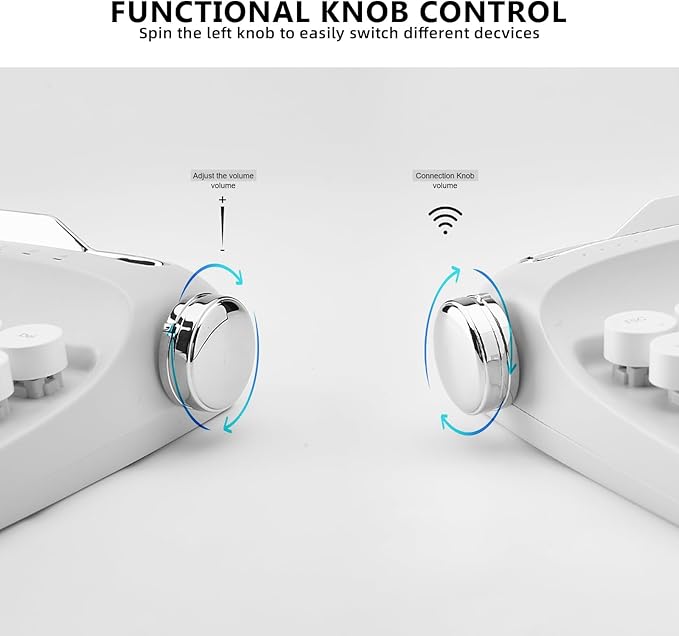- 68-KEY MINI TYPEWRITER KEYBOARD WITH KNOB CONTROL: Despite its compact size, the B307 membrane keyboards features 68 keys and all the functionality typer need for efficient typing. 2 knobs are functional. Turn the knob on the left to change the connection channel. Turn the knob on the right to change the volume. This functional and compact design make the keyboard an ideal choice for desk accessories & workspace organizers