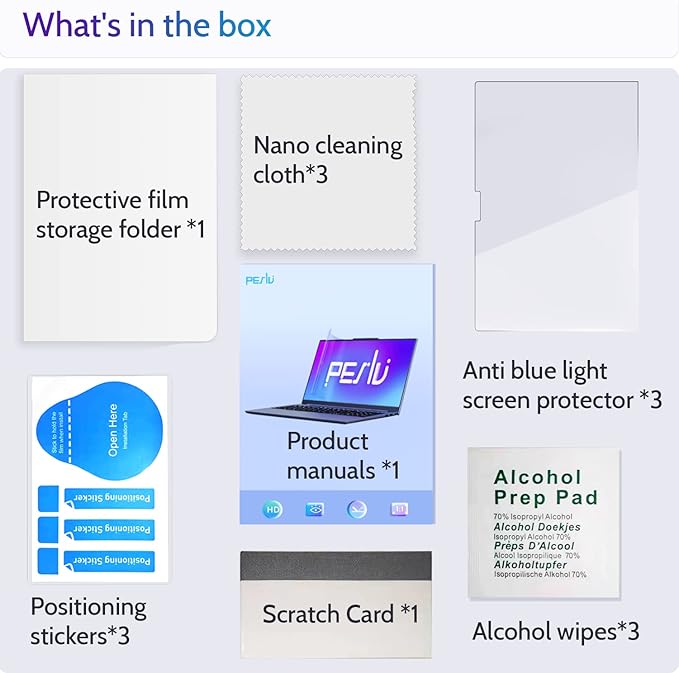 - 【VALUE PACK】Includes macbook 15 inch anti-blue light screen protector *3, installation tool kit *3, screen cleaning kit *3, scratch card *1, product guide *1, 15.3 in mac screen protector storage clip *1. Peslv is a factory that integrates production, processing and sales, and we are committed to making you more satisfied. Buy with confidence. [macbook air 15 inch anti blue light shield lifetime warranty]