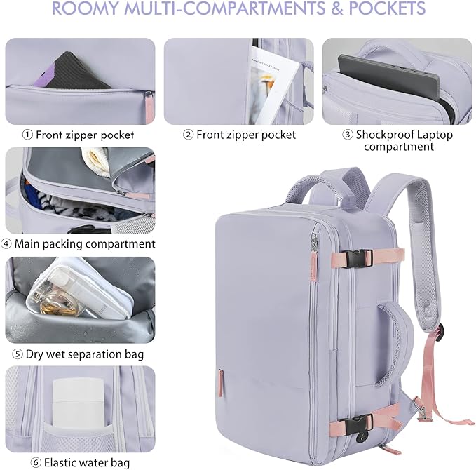 Beraliy Large Travel Backpack For Women, Airline Approved Carry On Backpack, Anti Theft Personal Item Backpack, Waterproof Bag, Casual Daypack Travel Essentials