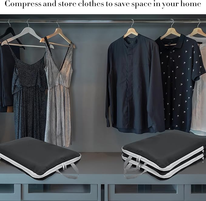 - Convenient to Use: the compression packing cubes for suitcase are suitable for most of the people to contain their clothes, jackets, socks, underwear and more, also you can use them to store your shoes, which can make you to find the stuff easily and conveniently