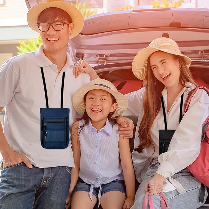 sundee Travel Neck Wallet with Double Zippers, RFID Blocking Passport Holder with Adjustable Neck Strap for Men and Women to Keep Cash, Credit Cards and Travel Documents Safe - Navy Blue