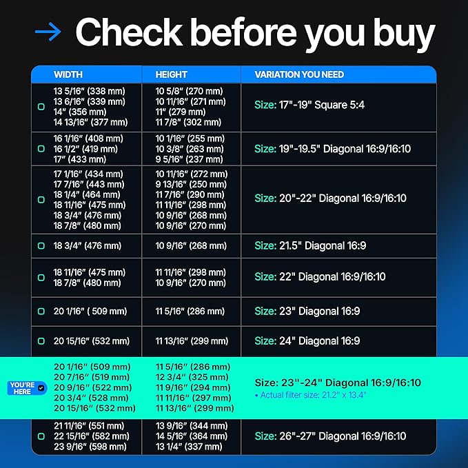 Universal 23"-24" - 23", 23.6", 23.8", 24" - 16:9/16:10 Aspect Ratio - 2 Pack - Computer Privacy Screen Filter for Widescreen Computer Monitors - 21.2"x13.4" = 541x342mm - Monitor Frame Hanging Type