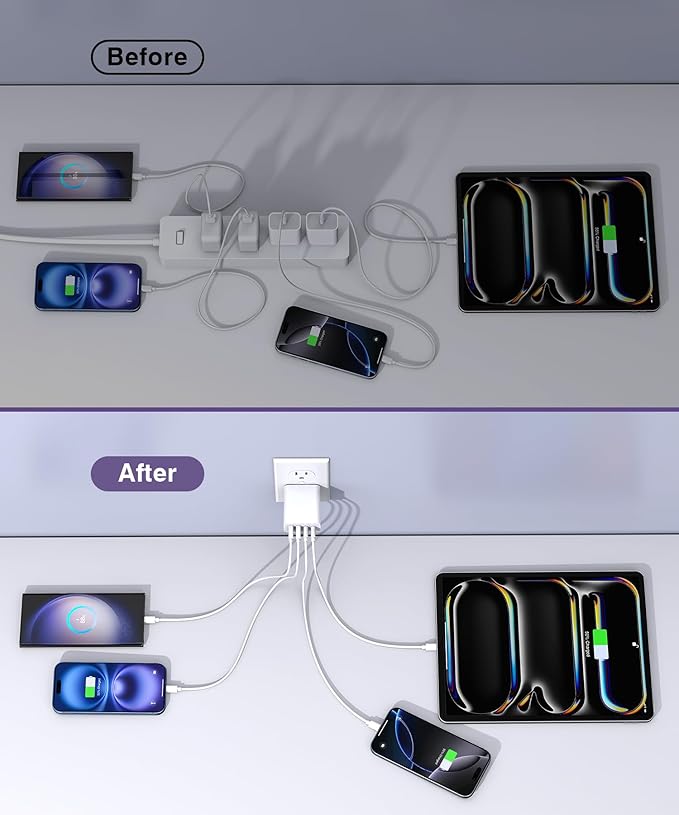 - Universal Compatibility Wall Charger: Due to the special 4-port,the USB charger is compatible with almost all electronic devices,charging adapter for iPhone 17/17 Pro/17 Pro Max/16/16 Pro/16 Pro Max/16 Plus/15/15 Pro/ 15 Pro Max/15 Plus/14/14 Pro/14 Pro Max/13/13 Mini/13 Pro Max/12/12 Pro Max/12 Pro Max/12 Mini/SE 2020/11/11 Pro/11 Pro Max/XR/XS/X/8/7,iPad Air/Pro/Mini,Samsung Galaxy S22/S21/S20/S10/S9/S8/A12/A13/A22/A32/A52/A53/A71/Note 20 10,Tablets,LG,Motorola,Google Pixel and other digital devices compatible