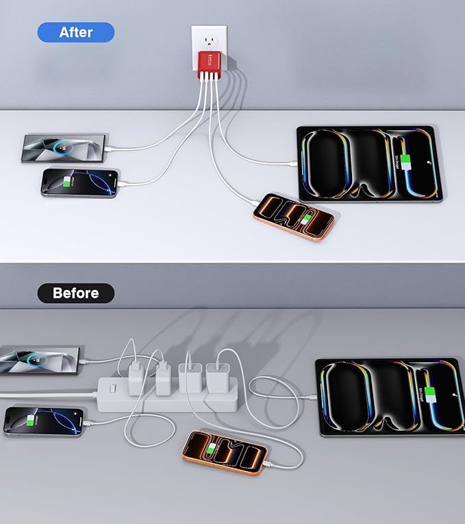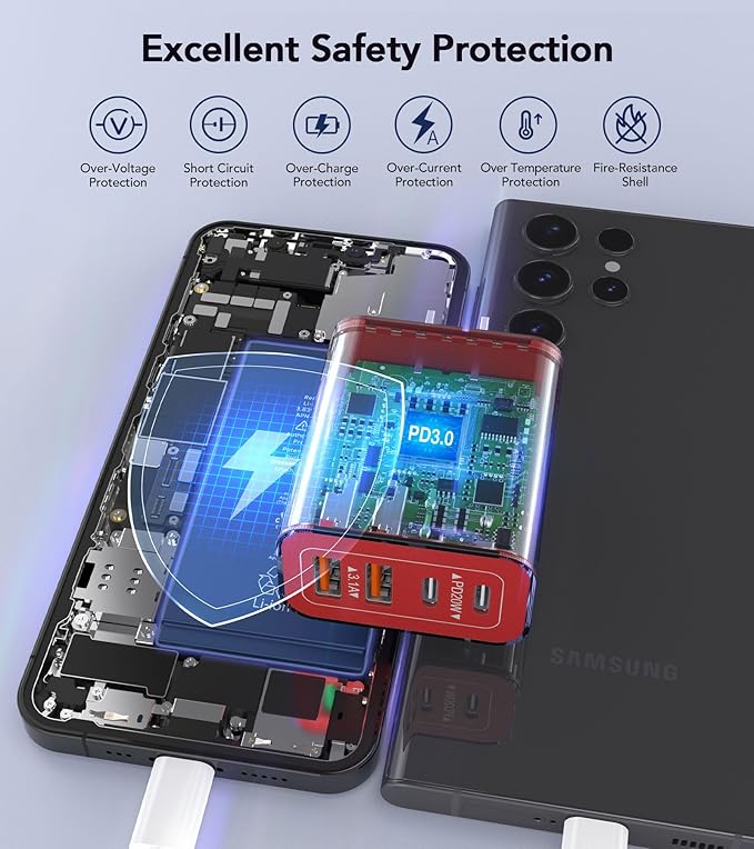 - Universal Compatibility:Due to the special 4-port,the USB charger is compatible with almost all electronic devices,charging adapter for iPhone 17/17 Pro/17 Pro Max/17 Air/16/16 Pro/16 Pro Max/16 Plus/15/15 Pro /15 Pro Max/14/14 Pro/14 Pro Max/13/13 Mini/13 Pro Max/12/12 Pro Max/12 Pro Max/12 Mini/SE 2020/11/11 Pro/11 Pro Max/XR/XS/X/8/7,iPad Air/Pro/Mini,Samsung Galaxy S22/S21/S20/S10/S9/S8/A12/A13/A22/A32/A52/A53/A71/Note 20 10,Tablets,LG,Motorola,Google Pixel and other digital devices compatible