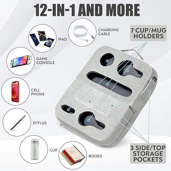 - ๐ CONVENIENCE AT YOUR FINGERTIPS: TabCouchCaddy simplifies your daily routine with ease. It's more than just a cup holder; it's your go-to tablet and book holder and even transforms into a comfy neck pillow. Enjoy enhanced comfort and easy access to your essentials in various settings with this versatile and convenient Couch Cup and Tablet Holder Pillow.