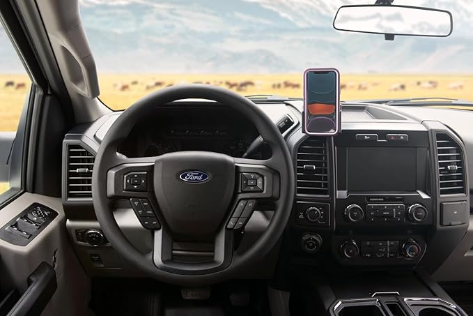 - Securely attaches to the dashboard just above the center driver's side vent, for optimal phone viewing and providing a secure fit within easy reach from the driver's seat for hands-free use.