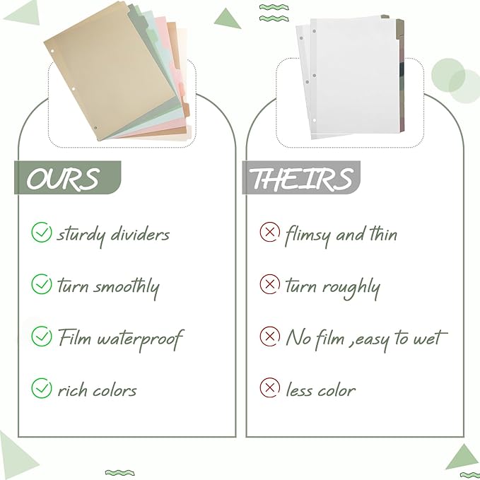 - Thick Paper and Plastic Material: the binder divider is made of quality thick paper and plastic, which are reliable and strong, not easy to break or bend, can serve you for a long time; When you are writing, the ink will not penetrate to the back side