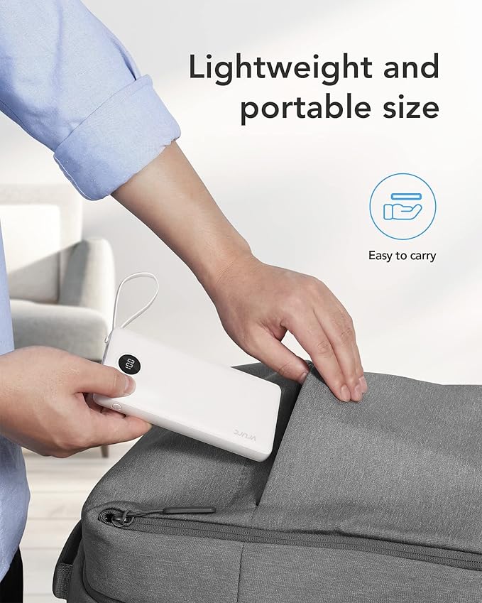 VRURC Portable Charger Power Bank, 10000mAh Travel Essentials Battery Pack, 5 Outputs 2 Inputs Slim Charing Bank Built-in Cables Cords Wires Compatible with iPhone,Samsung,Android-White(1 Pack)