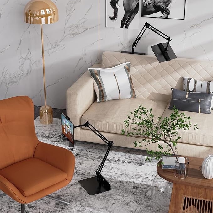 - 【Flexible Angle and height adjustment】: The powerful and flexible robotic arm can be easily adjusted to any position and bend in any direction. The universal knuckle ball on the back of the iPad clip easily tilts left and right and can be rotated 360 degrees for optimal use of the electronic device.