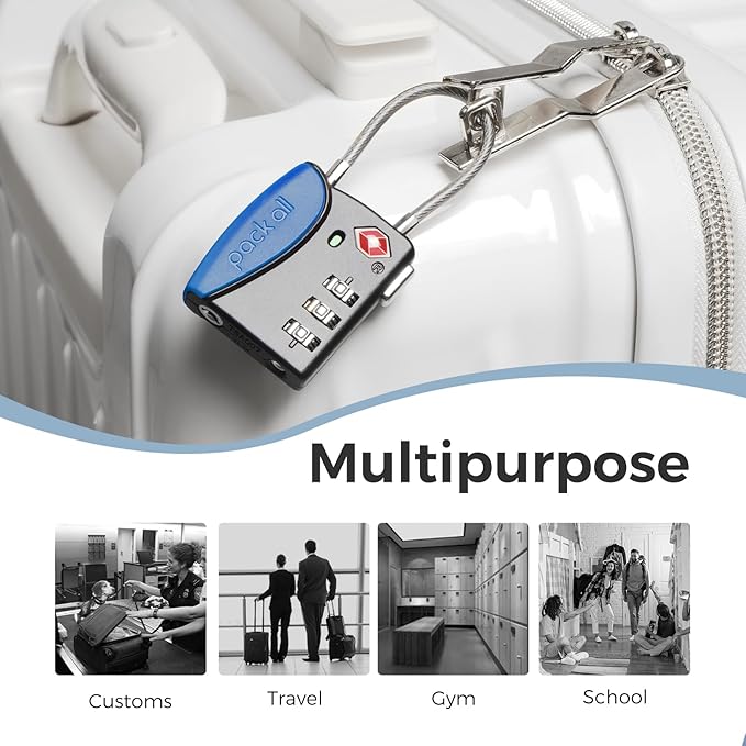 pack all TSA Approved Cable Luggage Locks, 3 Digit Combination Padlocks, Travel Lock for Suitcases & Bag, Alloy Body, Travel Accessories (4 Pack)(Navy)