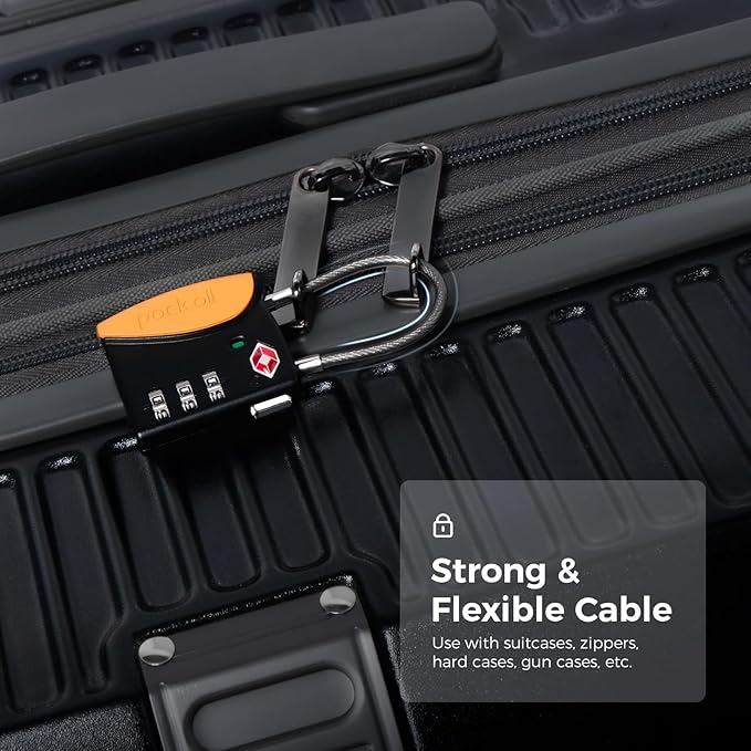 pack all TSA Approved Cable Luggage Locks, 3 Digit Combination Padlocks, Travel Lock for Suitcases & Bag, Alloy Body, Travel Accessories (4 Pack)(Orange)