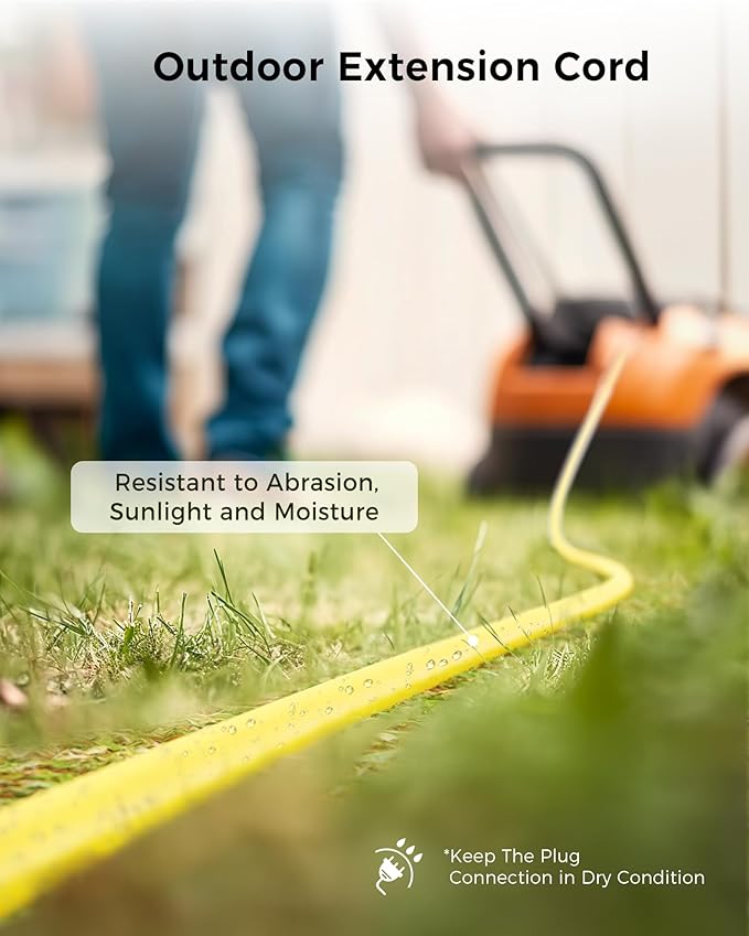 - Indoor & Outdoor Extension Cord: This extension cord is versatile, perfect for both indoor and outdoor use. Ideal for powering outdoor lighting, garden tools, or patio appliances, as well as indoor electronics and appliances.