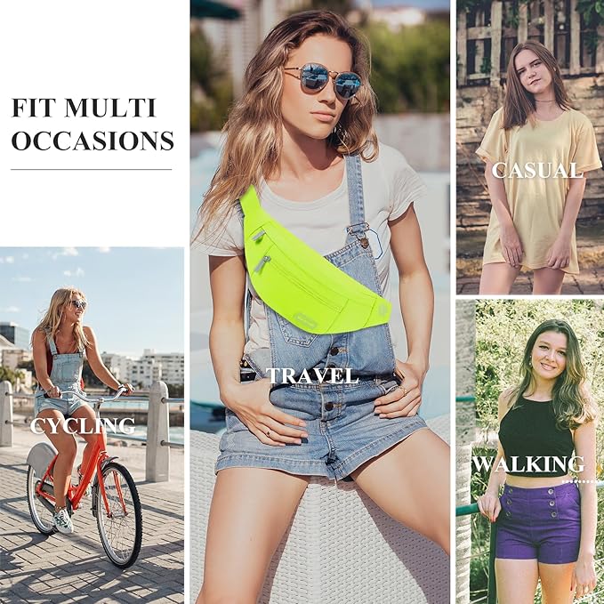- Best Gifts for Women Men,Enjoy Various Activities and Festival Hands-Free — The Fanny Pack size is about 14.3"x 5.9" x 3.5" with 4(Four) zippered pockets perfect for most people who want to be hands free to carry the most needed items,include all size of phone, passport, keys,ID and other small items.Perfect for various activities such as Shopping,Traveling,Walking,Cycling,Hiking,Holidays,Festivals and so on.A great ThanksGiving and Christmas Gift for Women Men and Family.