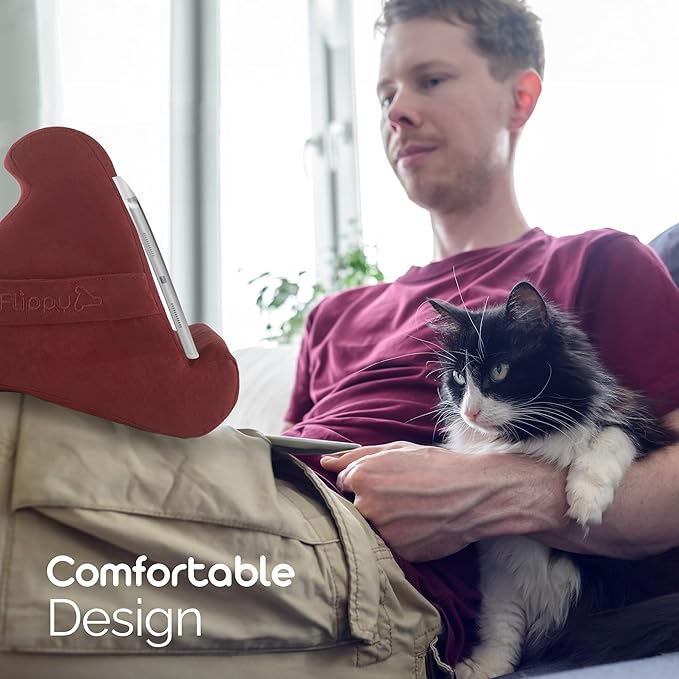 Flippy Tablet Pillow Stand - Cushion Tablet Stand & Holder, Bed Support for Lap and Desk, Compatible with Phone & Book Reading: Kindle, iPad Pro, iPhone & Samsung - Nebbiolo