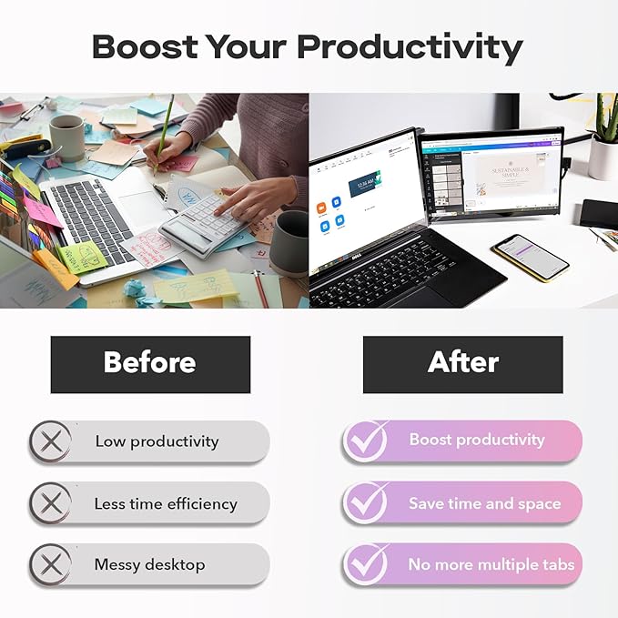 - After-sales: If you encounter any problems during the use of this external monitor, you can communicate with us; This dual portable monitor is beautifully packaged and is a good gift for friends