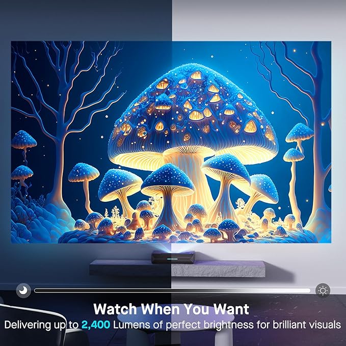 NexiGo Aurora Pro, Ultra Short Throw 4K Tri-Color Laser Projector, 2400 Lumens, Screen Adoption, Dynamic Laser Dimming, Dolby Vision & Atoms, HDR10, HLG, Active 3D, 60W Speakers, UST Laser TV, PJ92