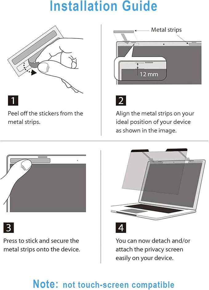 - 4.【Perfect for Travel and Open Workspaces】:Magnetic 15.6 inch Laptop Privacy Screen is the ideal solution for healthcare providers, mobile workers, commuters, students, and business travelers. now you can stay compliant and safeguard sensitive corporate Information while working in airplanes, subways, airports, and public areas. Laptop Privacy Screen Protector also helps keep your screen safe from dust and scratches from daily use.