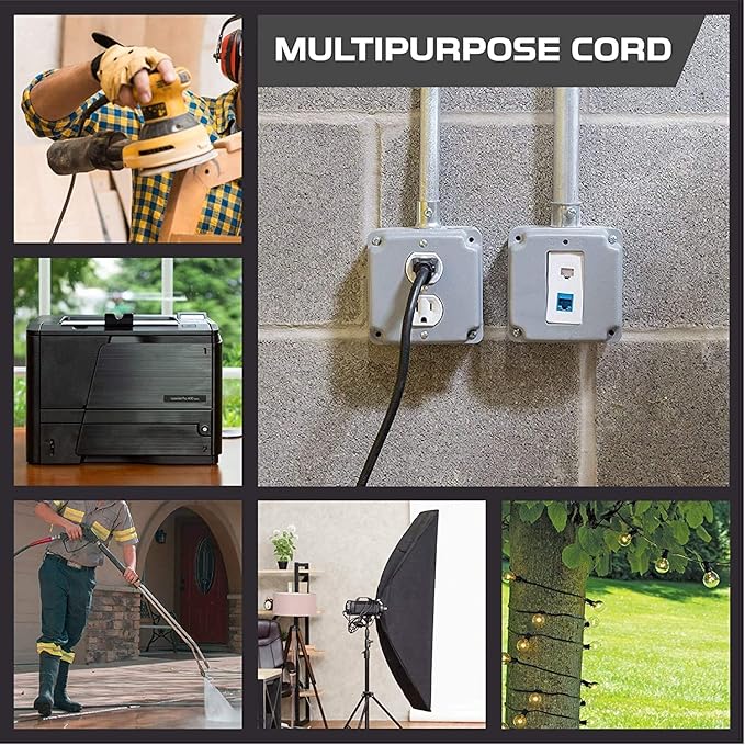 - SJTOW Extension Cord: This 12 gauge extension cord is built to last with water, oil, and corrosion resistant plus flame retardant. The 10 foot extension cord remains tangled-free in any weather.