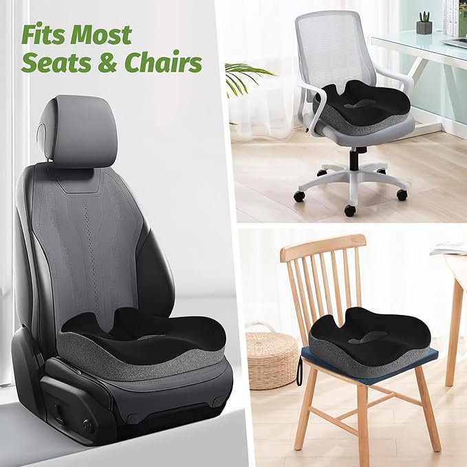 - CONCAVE U SURFACE DONUT CUSHION: The concave U shape of the hemorrhoid pillows for sitting leaves space for our tailbone, greatly reducing the pressure on our pelvis floor. The rising U shape tail contours the butt and adds more comfort.