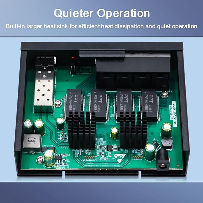 - 🌐Quieter Operation: The SODOLA 8-port 2.5G switch features a rugged metal casing for superior durability and built-in larger heat sink for efficient heat dissipation and quiet operation.