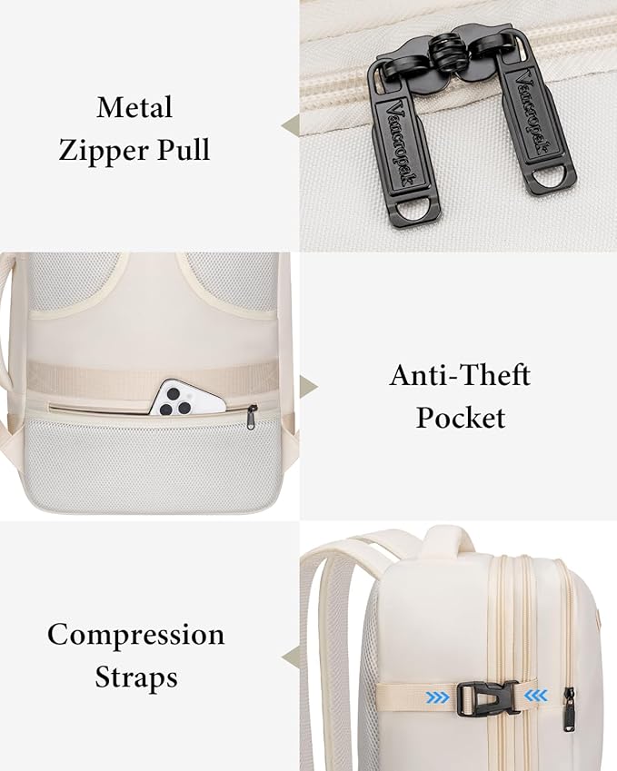 Vancropak Expandable Carry on Backpack for Airplanes, TSA Personal Item Airline Approved 40L Travel Backpack for Women, Lightweight Weekender Overnight Luggage Daypack Suitcase, Travelers Gifts, Beige