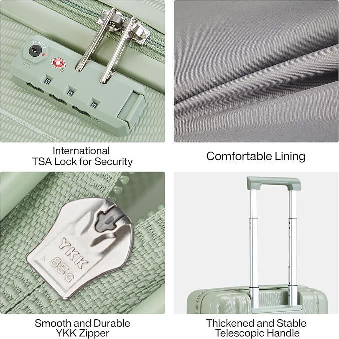 Hanke Luggage Sets 3 piece Carry On Luggage with Wheels PC Hard Shell Suitcases Lightweight Checked Travel Luggage Large Travel Suitcase Woman Men 20/24/29 Inch(Bamboo Green)