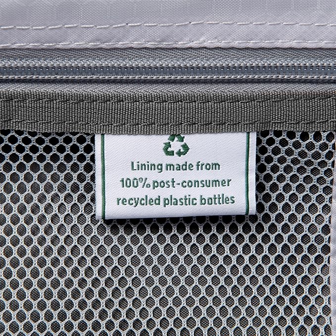 - ECOFAB interior lining with H2O guard is made from 100% post-consumer recycled plastic bottles to help reduce environmental waste. Durable polyester fabric with DuraGuard water-repellent coating resists stains.