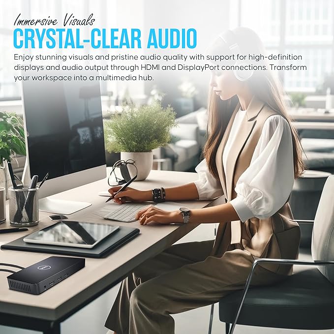 Dell D3100 Dock USB 3.0 Ultra HD/4K Triple Display Docking Station Dual Monitor with 65W, HDMI & USB 3.0 Cable
