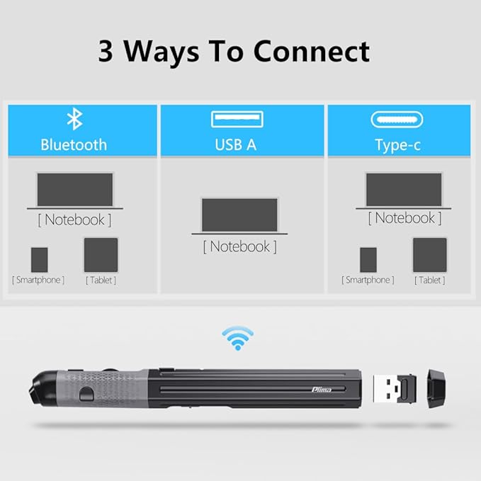 - 【Dual-Mode Switch】 Plima Computer Mouse Pen, with its wireless dual-mode multi-channel design, enables seamless and rapid switching, preventing interference. The effective connection range extends up to 10 meters, enhancing flexibility and convenience for users.
