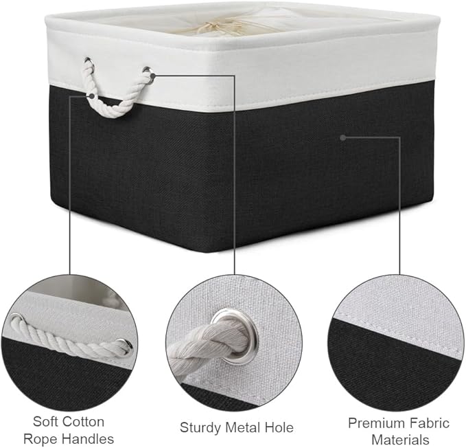 TheWarmHome Organization and Storage Basket for Organizing - Jumbo 3 Pack 17.7x13.8x9.7 inch Fabric Storage Cubes for Closet Gifts Organizer Empty Book (White & Black)