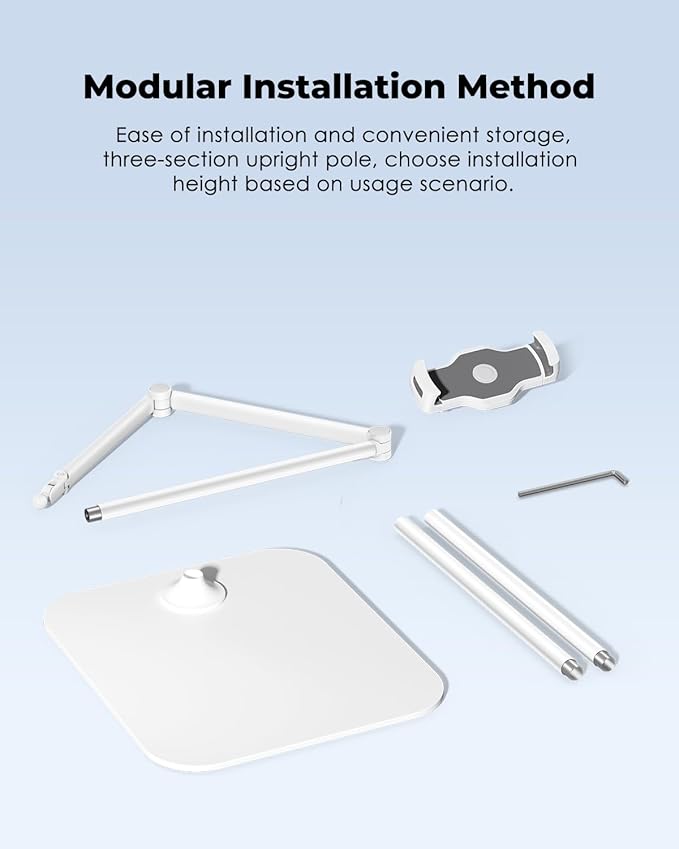- 【Flexible Angle Adjustment】The tablet holder can rotate 360 degree, easily adjust your device to the most comfortable position. Press the silver magnetic cover at the joint to remove it, and use a wrench to adjust the tension for supporting heavier devices. Ensuring that your equipment is stable and will not fall. The stable stand can hold your device in any direction without moving the base.