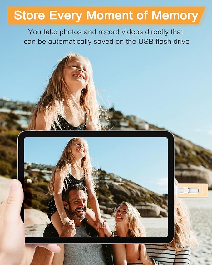 - 【High transfer speed】: Transfer photos, videos, and files in seconds with our USB stick. With a write speed of up to 20 MB/s and a read speed of up to 25 MB/s, our flash drive for phone have higher performance than conventional usb storage flash drive. Save time and get more done with phone photo storage stick. (Tip: phone/iPad needs to download "EASYFLASH PRO" APP from APP Store when using memory stick; Android phone/PC no need to download APP).