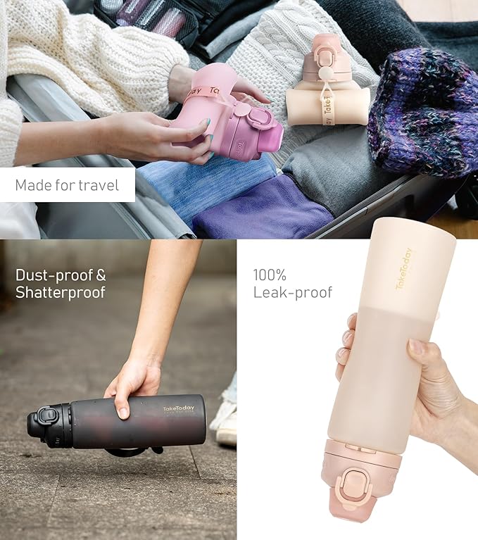 - [Sustainable Lifestyle] We care about the damage single-use plastics are doing to our environment, and we're taking action. Taketoday collapsible water bottle is reusable, sturdy, and portable, reducing the need for single-use plastic bottles. The silicone material we used is eco-friendly and our packaging uses 95% less plastic. It makes an ideal gift for those who share a healthy and sustainable lifestyle.