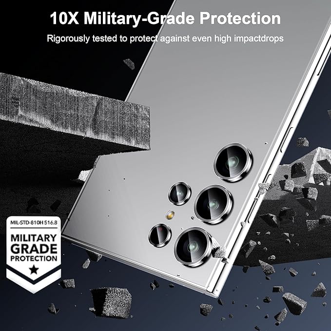 - Military Grade Protection & Anti Fingerprint: Made of space titanium alloy + 9H tempere glass materials, provide powerful scratch resistance against everyday hard and sharp objects. The seal ring is designed to prevent fingerprints, sweat and grease residues. Keep your s24 ultra camera original beauty.