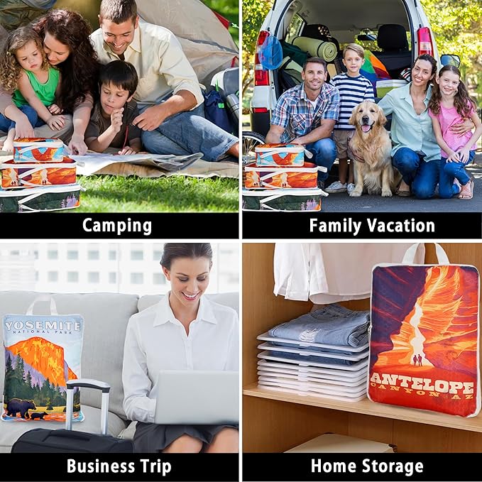 - Compression Design & Art: These unique art compression packing cubes set design by our independent designer that adopt double zipper design, which works like a vacuum sealer, can compress your clothes together, minimize the internal space. So that your suitcase can fit more things.