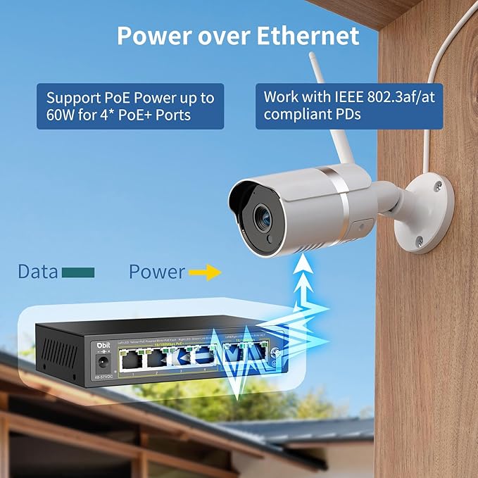 - 【Power Over Ethernet】4× PoE+(802.3at/af) ports providing up to 30W per port, total PoE budget 63W.