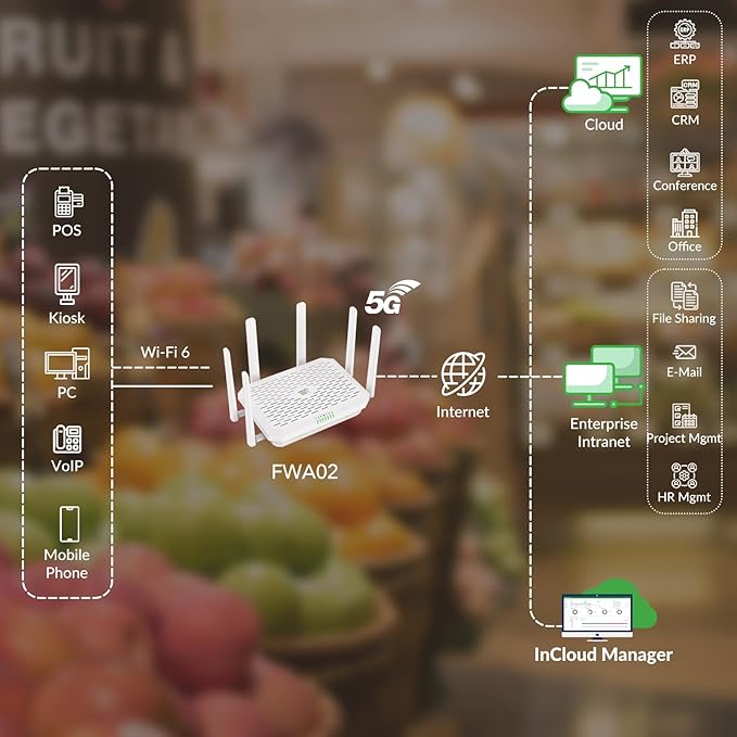 - Always-on“Connectivity: The FWA02 comes with 5G/wired backup, cellular link failover, dual SIM switching, optional eSIM, and other features, providing a reliable and robust connection to ensure your network stability and reliability.