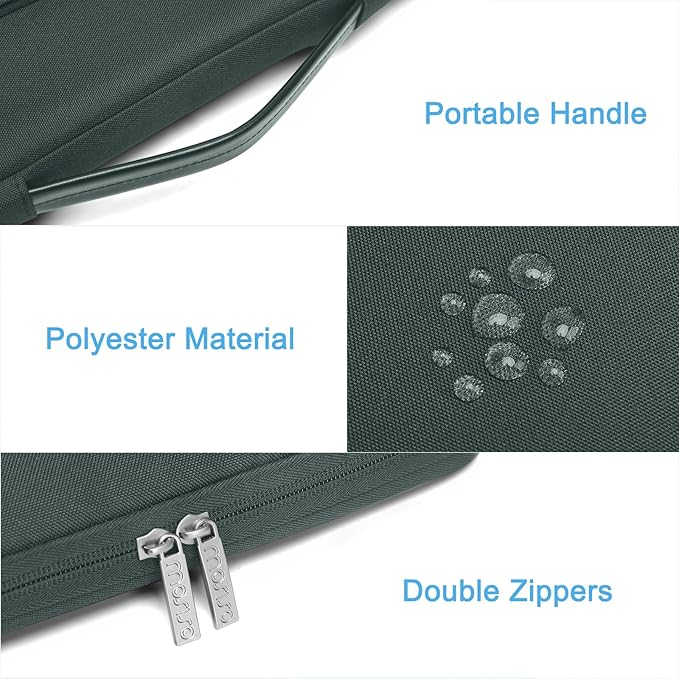 MOSISO 360 Protective Laptop Case 13.3 inch, 13-13.3 inch Laptop Sleeve Compatible with MacBook Air/Pro 13 / Pro 14, HP Dell ASUS Lenovo,Side Open Bag with 2 Raised&1 Flapover Pockets, Emerald Green