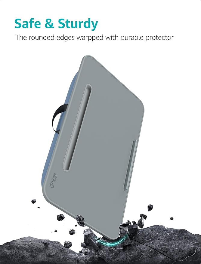 Istudyniture Lap Desk | Portable Laptop Desk & Stand – Fits Up to 17 inch – Washable Cushion, Built-in Phone Holder – for Bed, Couch, Sofa, Floor – Writing, Reading, Home Office – Large, Grayish Blue