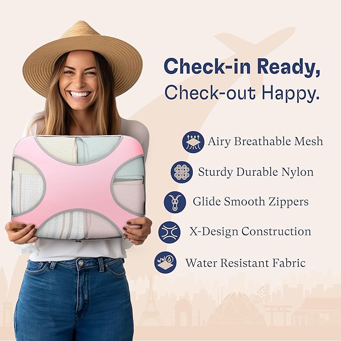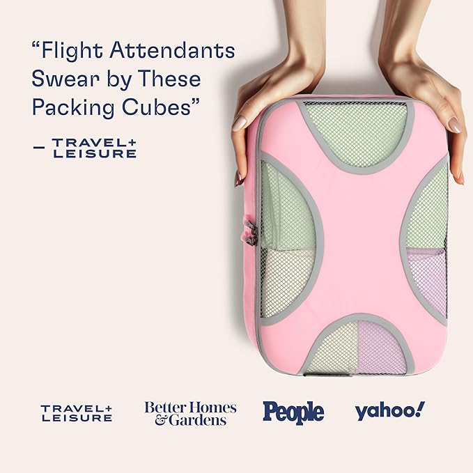 Shacke Premium 8 Packing Cubes Set - Lightweight Mesh Travel Luggage Organizers with Laundry Bag, 8-Piece Suitcase Storage System (Summer Pink)