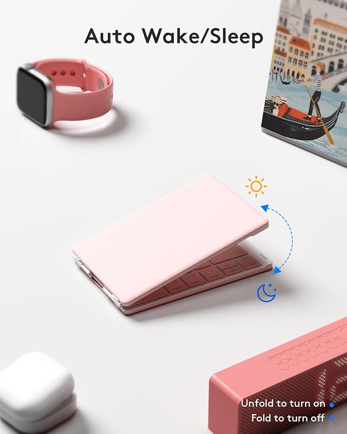 Samsers Bluetooth Foldable Keyboard - Wireless Portable Folding Keyboard, Full-Size Ultra-Slim Rechargeable Connect Up to 3 Devices for iOS, Android, Windows Phone, Tablet, Laptop - Pink