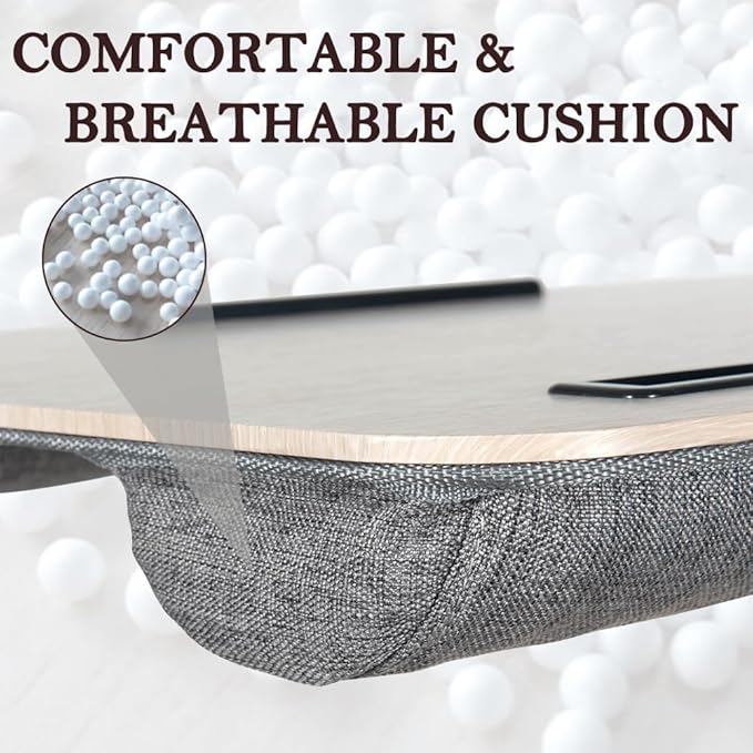 Portable Laptop Desk Fits Up to 16“ Laptops, with Tablet Slot, Built-in Cushion, Great for Home & Office,Lap Desk for Laptop,Lap Desk with Cushion (Light Wood, Medium)