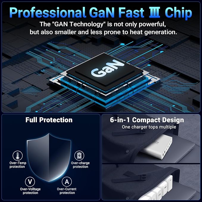 - Powered By GaN III Pro: Utilizing upgraded advanced Gallium Nitride (GaN) technology, this fast USB C charger block reduces power waste and heat by 30%, ensuring normal temperature even during full-power operation.