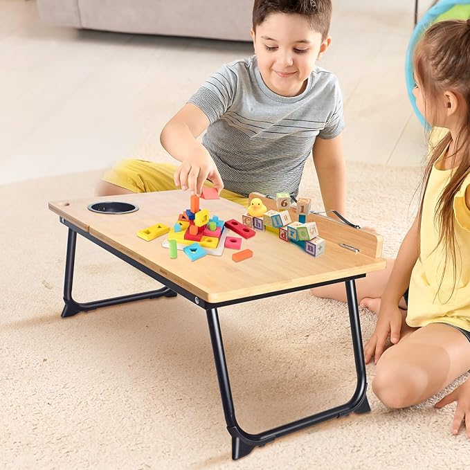 wishacc Book Stand for Reading in Bed, Bamboo Laptop Stand Adjustable Book Holder Tray with Page Paper Clips Multi Angles Adjustable Cooking Bookstands for Textbook Recipe Magazine Tablet Portable