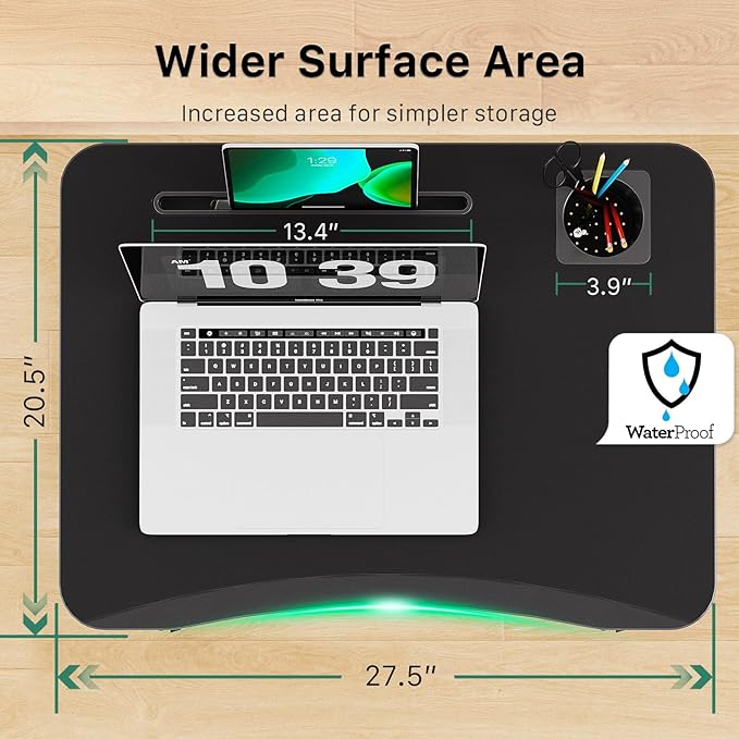 - Ergonomic Top Design:Curved desktop of rolling laptop desk is for comfortable working conditions ,spacious desktop surface 27.5''L x 20.5''W mobile desk with cup holder and slot for better storage. And the table top is made of E0 grade ecological protection wood, which is resistant to dirt and not easy to scratch
